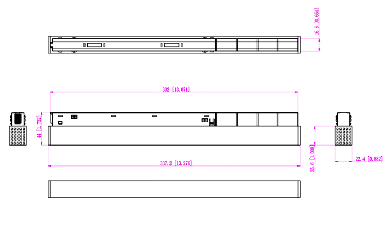 | Dimensión | 337,2 x 22,4 x 44 mm / 13,27 x 1,73 x 0,88 pulgadas (largo x ancho x alto) | ||