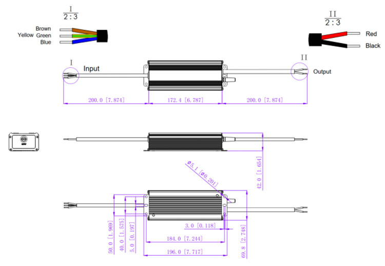 2. Cable de salida 2*16AWG, cable rojo (+) al lado positivo (+), cable negro (-) al lado negativo (-).
