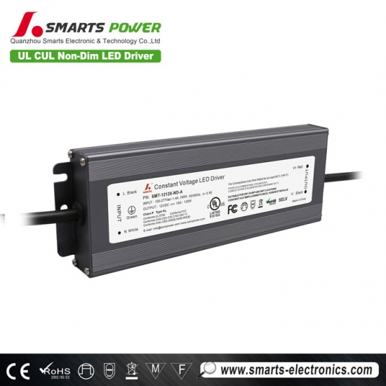 Los inteligentes Fuente de alimentación LED de 120 W y 12 V/24 V no regulable Funciona en modo de voltaje constante y ofrece una eficiencia de hasta el 91 %. Cuenta con protección integral multinivel contra cortocircuitos, sobrecalentamiento y sobrecargas. Con certificación UL y conforme a las normativas internacionales de seguridad para iluminación, este producto se distribuye principalmente en el mercado norteamericano.