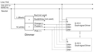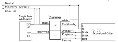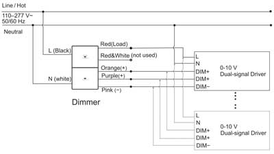 Si el regulador puede arrancar, pero el balasto/controlador de 0-10 V no arranca, verifique si el cable activo y el cable neutro en la entrada del regulador (o balasto/controlador de 0-10 V) están invertidos.