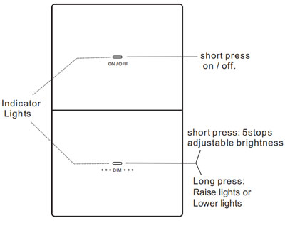 Nota: Cuando el botón de atenuación (pulsación larga) alcanza el brillo máximo o mínimo, la luz indicadora parpadea lentamente. |