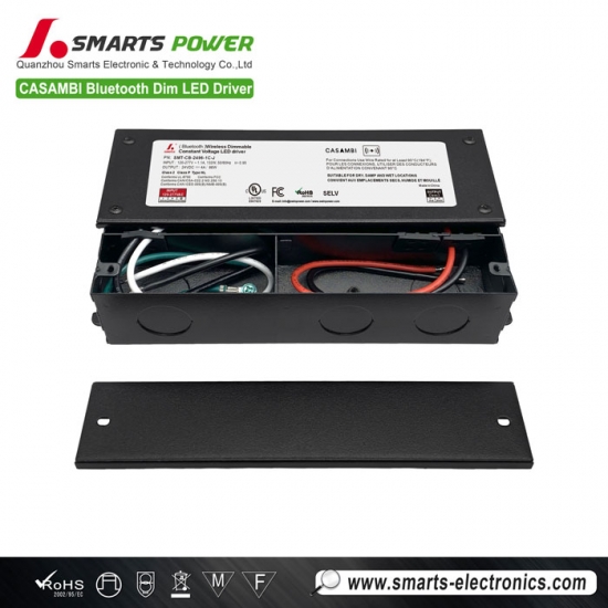Controlador LED inalámbrico CASAMBI de voltaje constante regulable de 60 W, 12 V y 24 V con caja de conexiones
