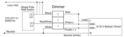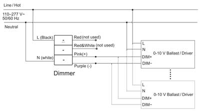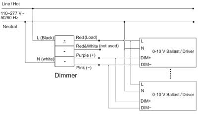 Si el regulador puede arrancar, pero el balasto/controlador de 0-10 V no arranca, verifique si el cable activo y el cable neutro en la entrada del regulador (o balasto/controlador de 0-10 V) están invertidos.