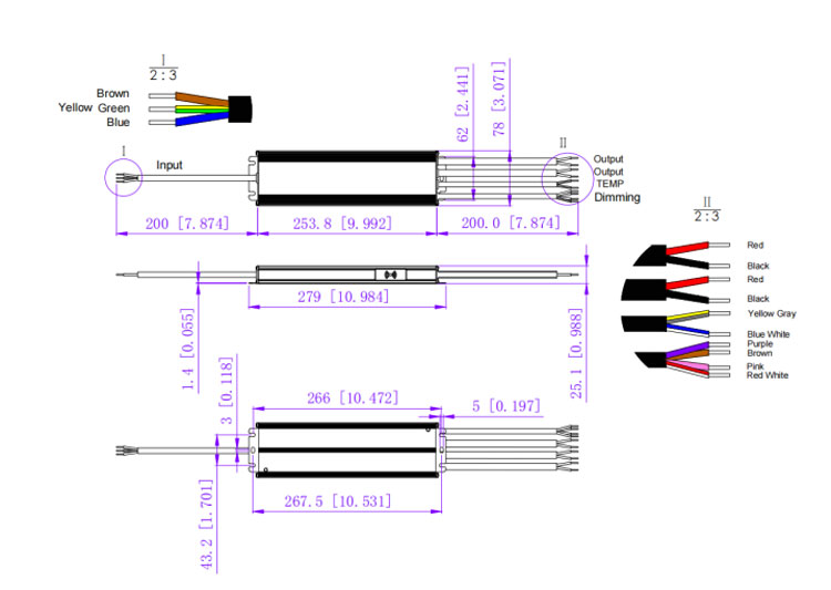 Notas | 1. A menos que se especifique lo contrario, todas las especificaciones se miden con una entrada de 277 V, carga nominal y una temperatura ambiente de 25 ℃. | ||