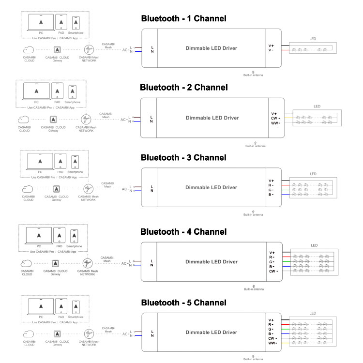 Controlador de atenuación de voltaje constante inalámbrico Bluetooth CASAMBI 12V/100V para exteriores