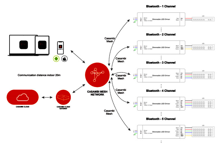 Esta carcasa de aluminio impermeable con clasificación IP67, Controlador LED regulable inalámbrico Bluetooth CASAMBI Utiliza refrigeración por convección natural e incorpora protección contra cortocircuitos, sobrecalentamiento y sobrecarga. Adecuado para proyectos de iluminación LED en interiores y exteriores, incluso en ambientes húmedos.
