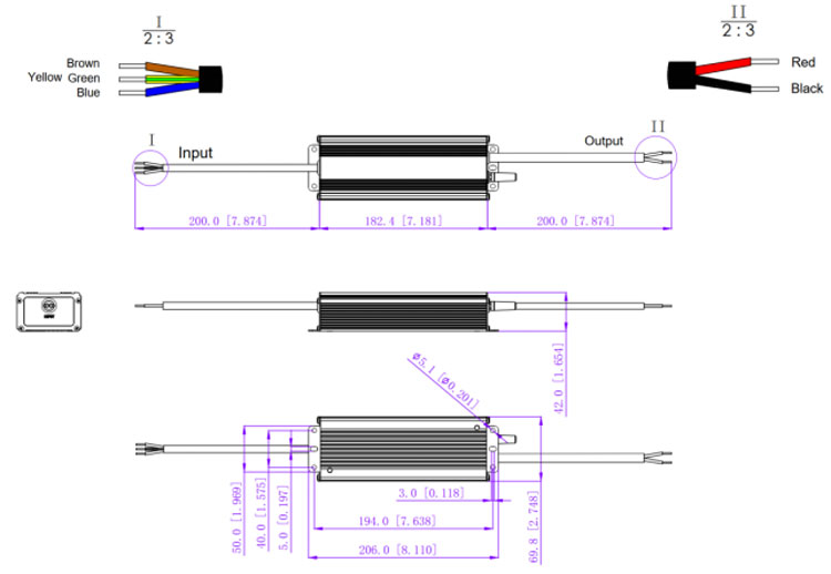 2. Cable de salida 2*16AWG, cable rojo (+) al lado positivo (+), cable negro (-) al lado negativo (-).