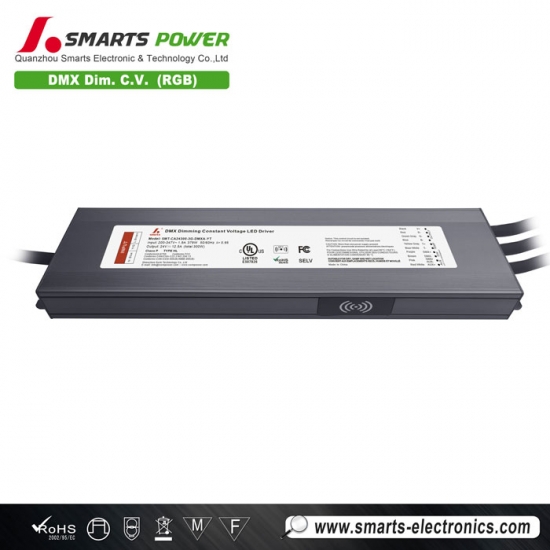 Controlador de iluminación LED inteligente DMX con voltaje constante regulable de 347 V CA, 24 V y 288 W para exteriores