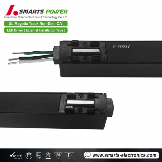 Amplio rango de voltaje de entrada de 100-277 VCA, Controlador LED de voltaje constante de 200 W y 24 V . Cuenta con un diseño de carcasa completamente de aluminio, adecuado para su instalación en sistemas de rieles magnéticos en interiores, proporcionando una iluminación suave, estable y sin parpadeos.
