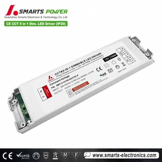 Modo de trabajo de voltaje constanteFuente de alimentación LED regulable 5 en 1 de 150 WCon función de conmutación de temperatura de tres colores CCT integrada. Diseño de carcasa de plástico, grado de impermeabilidad IP20, ideal para proyectos de iluminación en interiores secos.