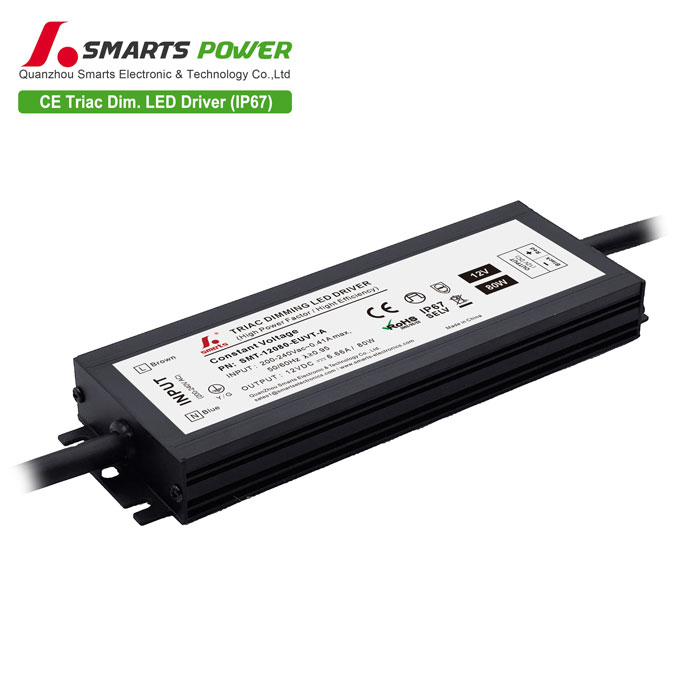 Este 80W Fuente de alimentación LED regulable con triac de voltaje constante Carcasa de aluminio, buena disipación de calor, clasificación de impermeabilidad IP65.